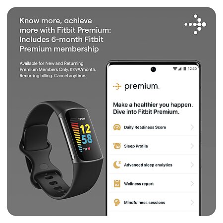 Fitbit Charge 5 Advanced Health & Fitness Tracker with Built-in GPS, Stress Management Tools, Sleep Tracking, 24/7 Heart Rate and More, Black/Graphite $118.97