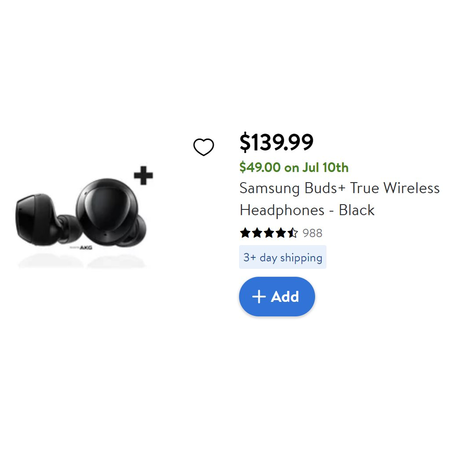[Starts 07/10] Samsung Buds+ True Wireless Headphones - $49 (Walmart+ Required)
