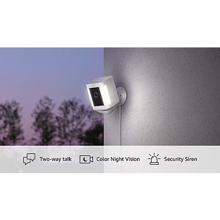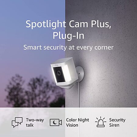 • Ring Spotlight Cam Plus Plug-in Camera w/ Two-Way Talk, Color Night Vision, and Security Siren (2022 Release)