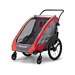 This double-seat trailer accommodates up to two children (40 pounds each), with a maximum weight of 80 pounds; a 5-point safety harness, padded straps and washable seat pads keep your young riders safe and comfortable