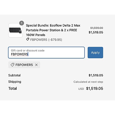 From Home Depot: Delta 2 + Delta 2 extra battery + 2x 160w panels for 1485 total?