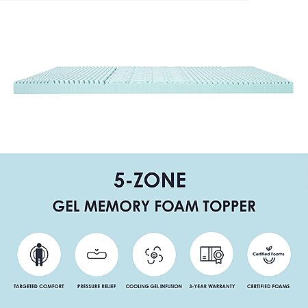 Model: Mellow 4 Inch 5-Zone Memory Foam Mattress Topper, Cooling Gel Infusion, Queen
