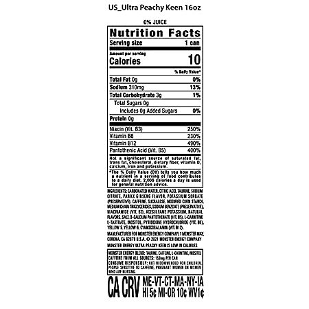 Model: Monster Energy Ultra Peachy Keen, Sugar Free Energy Drink, 16oz (Pack of 24)