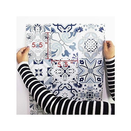 Amazon Prime Members: 3-Pack 78.7" x 17.7" Blue Tile PVC Peel and Stick Wallpaper