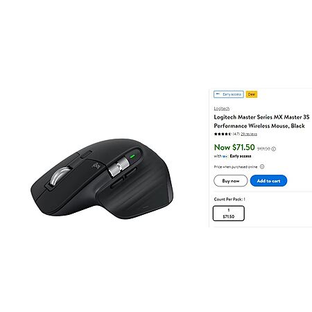 MyOfficeInnovations via Walmart has Logitech Master Series MX Master 3S Performance Wireless Mouse (Black, 910-006556) for $71.50. Shipping is free.