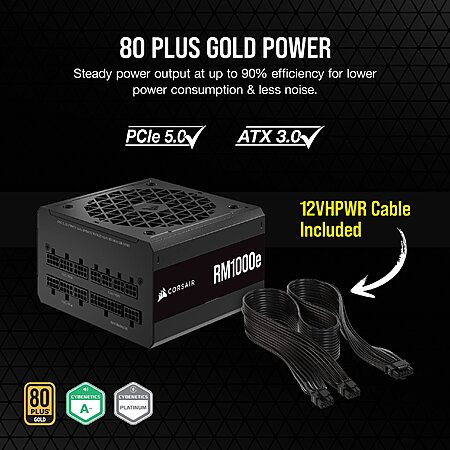 1000-Watts Corsair RM1000e Fully Modular Low-Noise 80+ Gold Efficiency ATX 3.0 Power Supply (Black, 2023) $150 + Free Shipping