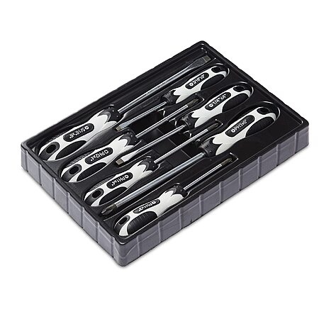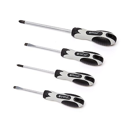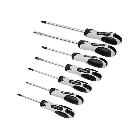 - Includes 7 screwdrivers: SL3/16 x 3", SL1/4 x 4", SL5/16 x 6", PH1 x 3", PH1 x 4", PH2 x 4", and PH3 x 6"