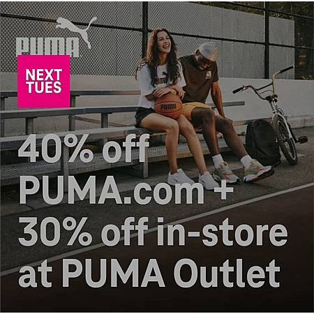 Puma: 40% off PUMA.com + 30% off in-store at PUMA Outlet