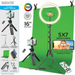 Bower Content Creator Kit: 16" Ring Light, 62" Tripod & 5'x7' Green Screen w/ 7 Special Effect Light Modes & Additional Accessories $10 + Free S&H w/ Walmart+ or $35+