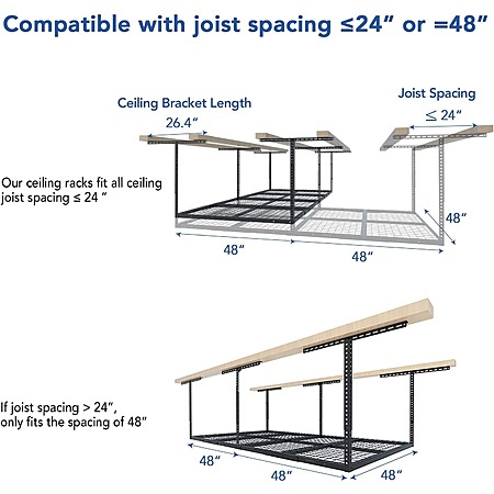 Model: FLEXIMOUNTS 4x8 Overhead Garage Storage Rack, Adjustable Garage Storage Organization Systerm, Heavy Duty Metal Garage Ceiling Storage Racks, 600lbs Weight Capacity, Black