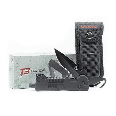 StatGear T3 Tactical Auto Rescue Tool w/ Seatbelt Cutter, Window Breaker & Knife