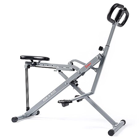 Model: Sunny Health & Fitness Upright Row-n-Ride Rowing Machine Rower for Full Body Workout, Glutes, Squat Assist, and Exercise, No. 077 - Silver