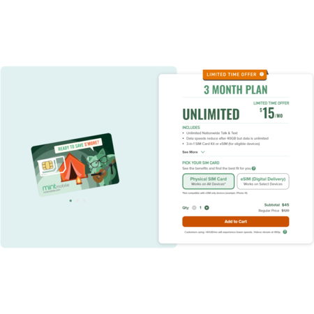 New Subscribers: 3-Month Mint Mobile Wireless Unlimited Talk/Text/Data Phone Plan Kit