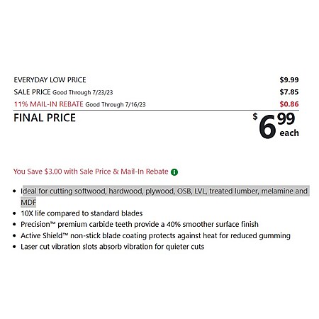 Crescent® 10" x 60-Tooth Circular Saw Blade Menards $7.85 - 11% YMMV