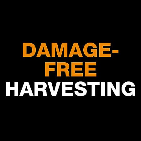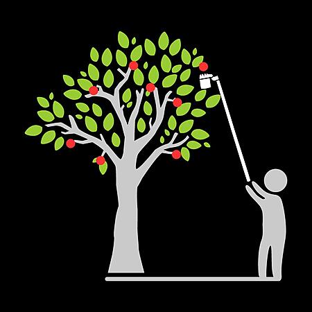 • Harvests fruit from tall trees without bruising or scratching