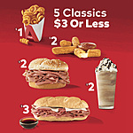 $1, $2, $3 Classics Special Pricing on select food items as seen in the list below. This offer is valid for