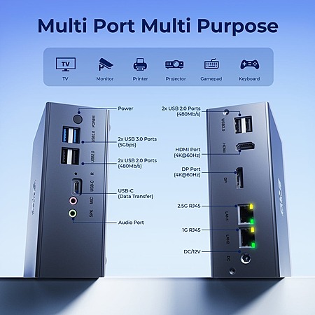 • CPU: Intel 12th Alder Lake N95 Quad-Core Processor (4 Cores, 4 Threads, 6MB Cache, Base Frequency 1.7 GHz, Up to 3.40 GHz )