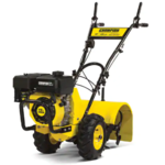 - Four heavy-duty 13.8 in. hardened steel tines with counter-rotation tilling