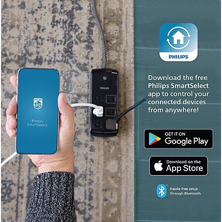 • 3 always-on outlets provide continuous power to household electronics while 3 smart outlets offer independent mobile operation. The easy-to-use Philips Smart Select app, available in the Apple App Store and on Google Play, features unique control options.