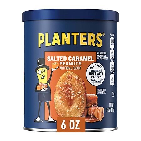 What You Get: Includes one, 6 oz resealable canister containing PLANTERS Salted Caramel Peanuts for easy, sharable snacking; Packaged for freshness and great taste