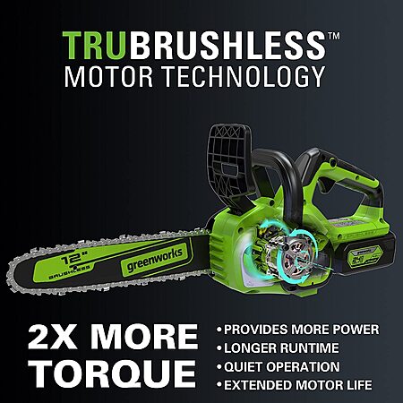 24V 12" Greenworks Brushless Cordless Compact Chainsaw w/ 4.0Ah Battery & Charger $106.48 + Free Shipping