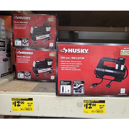 Great for most auto and home projects, the Husky 13-Gal. Portable Electric Air Compressor delivers 0.38 SCFM at 35 psi for quiet, abundant airflow. An included Mattress Nozzle, Sports Needle, Presta Valve Adapter tool accessories for inflating. A convenient tire inflator can help you to resolve road emergency.