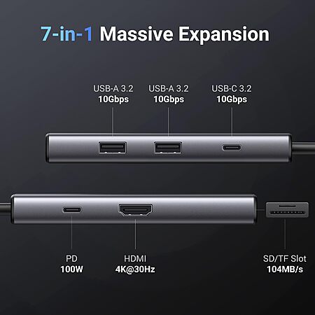 UGREEN Revodok Pro 7 in 1 USB-C Hub with 10Gbps USB-C & 2 USB-A Data Ports 4K HDMI, 100W Power Delivery, SD/TF Card Reader for MacBook Pro/Air, iPad Pro, $39.19 + Free Shipping