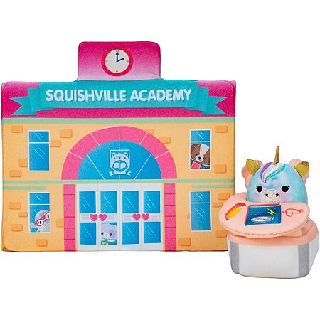 Model: Squishville by Original Squishmallows Deluxe Academy Playset - Includes 2-Inch Eunice The Unicorn Plush, School Desk, Locker, and School Playscene - Toys for Kids