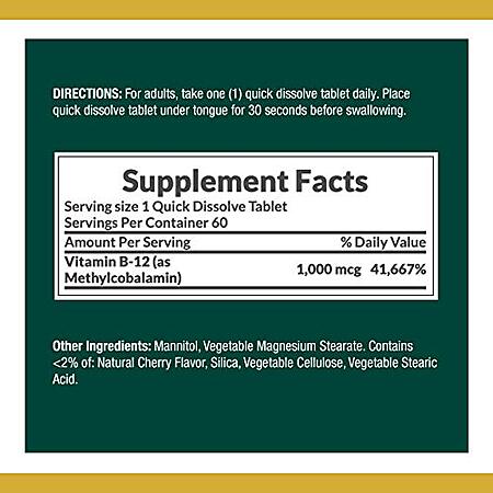 60-Count 1000-mcg Nature’s Bounty Vitamin B12 Quick Dissolve Tablets