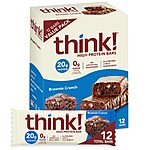 12-Count 2.1-Oz think! Protein Bars (Brownie Crunch) $12.94 w/ S&S + Free Shipping w/ Prime or on $25+