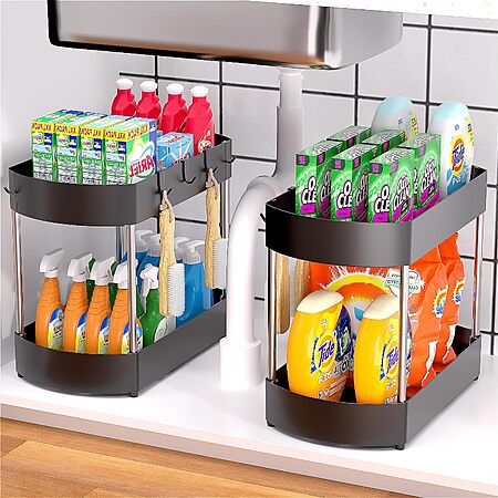 2-Pack Skysen Anti-Rust Under Sink Cabinet 2-Layer Organizer w/ 10 Hooks $15 + Free Shipping w/ Prime or on $25+