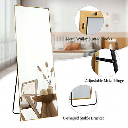 64" x 21" Beautypeak Full Length Mirror w/ Stand (Gold)