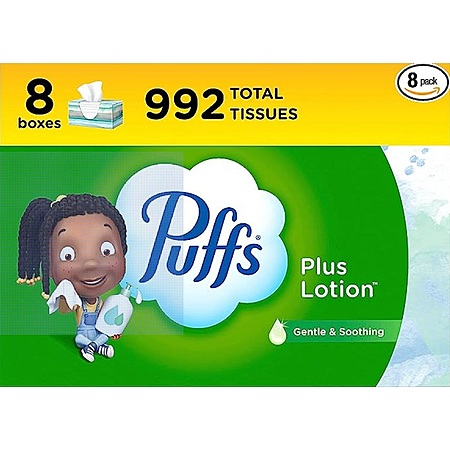 8-Pack 124-Sheet Puffs Plus Lotion Facial Tissues on sale