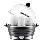 Easily boil, poach, or steam up to 6 eggs in minutes, faster than stovetop method. Use the included measuring cup to know how much water you need depending on the style of egg. The ready buzzer will signal once your eggs are finished cooking.