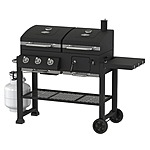 Fire up your appetite with the Expert Grill 2 in 1 Dual Fuel Gas & Charcoal 3 Burner Grill. This easy-to-use grill lets you choose the convenience of gas or the smoky flavor of charcoal to take you to barbecue heaven. The grill features with a heavy duty cast iron cooking grate offering enough space to grill up to 30 burgers at once, 277 square inch chrome plated warming racks. Perfect for backyard barbecues, parties, and more, the grill features a temperature gauge for added heat control. Set up two zone cooking and you can use your Expert Grill as a smoker for low-temperature cooking. The Expert Grill 2 IN 1 Dual Fuel Gas and Charcoal 3 Burner Grill is easily assembled with the included instructions and offers a foldable side shelf with three stainless steel hooks, a high-temperature powder-coated lid for a long life outdoors, and a variable height charcoal tray.
