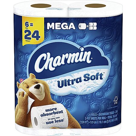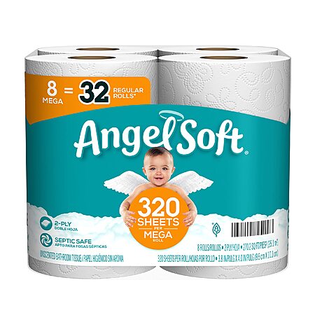 Toilet Paper: 32 Mega Rolls Angel Soft + 24 Mega Charmin Ultra Soft/Strong