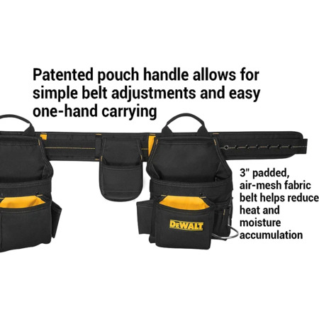 - Patented pouch handle allows for simple belt adjustments and easy one-hand carrying