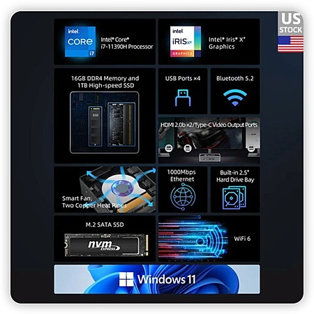 BMAX B7 Power Mini PC: Intel Core i7-11390H, 16GB DDR4, 1TB SSD $310 + Free Shipping