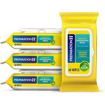 Amazon has 4-Pack 48-Count Preparation H Hemorrhoid Flushable Wipes w/ Witch Hazel for $6.82 - 25% when you "clip" coupon on product page - 5% when you check out via Subscribe & Save = $4.77. Shipping is free w/ Prime or on $25+ or $35+ orders (minimum requirement varies by location).