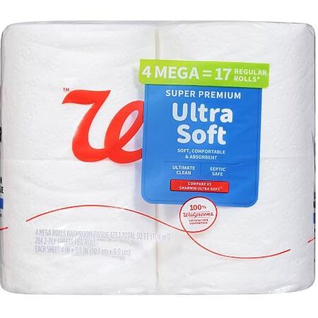 4-Ct Walgreens Super Premium Mega Rolls Bath Tissue (Ultra Soft or Ultra Strong)