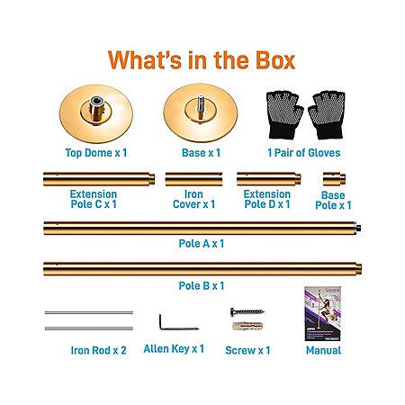 ADJUSTABLE HEIGHT: This spinning dancing pole includes 4 extension poles, making it suitable for ceiling heights from 6.7 feet to 9 feet. Make sure to get the measurement of ceiling height to select the appropriate extension pole