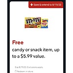 Free candy or snack item, up to a $5.99 value —