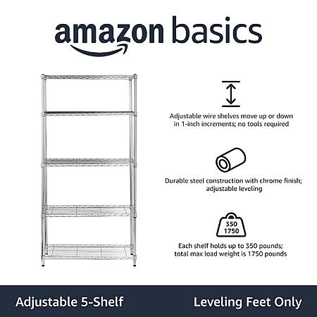 5-Shelf Amazon Basics Adjustable Heavy Duty Storage Shelving Unit (36" x 14 "x 72")