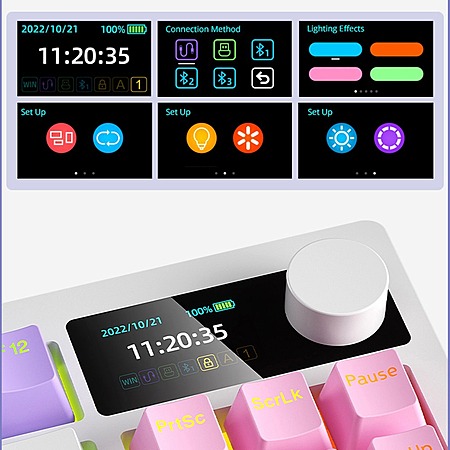 Really love the look of this board, and also loving the screen built in, but with no companion software available for the pc to make it easier to configure properly, and having to do everything on that tiny screen kind of makes it a little wonky to work with. There's nothing in the manual that tells me specifically that this will have any more versatility in customization that any other chinese off brand keyboard, only that i'll actually be able to see what i'm doing with the screen a bit. Stil, for that price, could be worth a gamble.