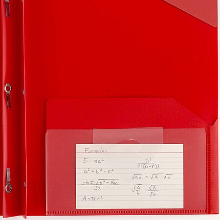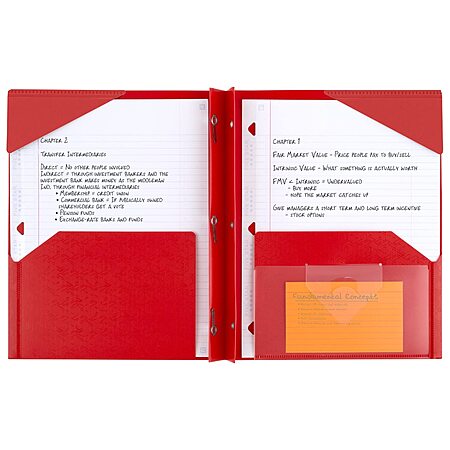 Amazon[amazon.com] has MeadFive Star 2 Pocket & Prong Plastic Folder (Red) for $1.69. Shipping is free w/ Amazon Prime or on $35+