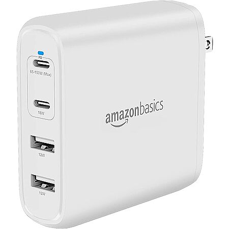 Amazon has Amazon Basics 100W Four-Port GaN Wall Charger w/ 2 USB-C Ports & 2 USB-A Ports w/ Power Delivery PD for Laptops, Tablets & Phones on sale from $35.48. Shipping is free.