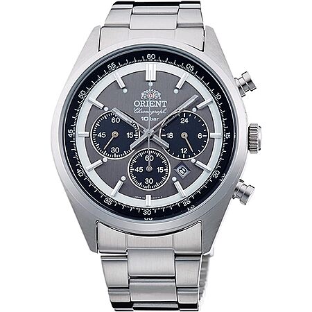 Orient Chronograph Neo 70s Solar Panda Stainless Steel Watch (Dark Gray)