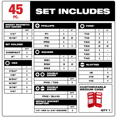 Milwaukee SHOCKWAVE Impact Duty Alloy Steel Screw Driver Bit Set (45-Piece) $22 at Home Depot