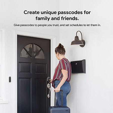 • Check the status of your door lock from anywhere and lock it with the Nest app; or use one-touch locking on your way out, or a passcode on the keypad lock; with auto-lock, it can lock automatically when you're away from home
