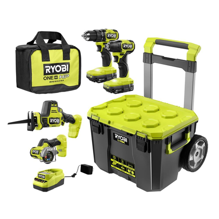 Model: RYOBI ONE+ HP 18V Brushless Cordless Compact 4-Tool Combo Kit with (2) 1.5 Ah Batteries and Charger